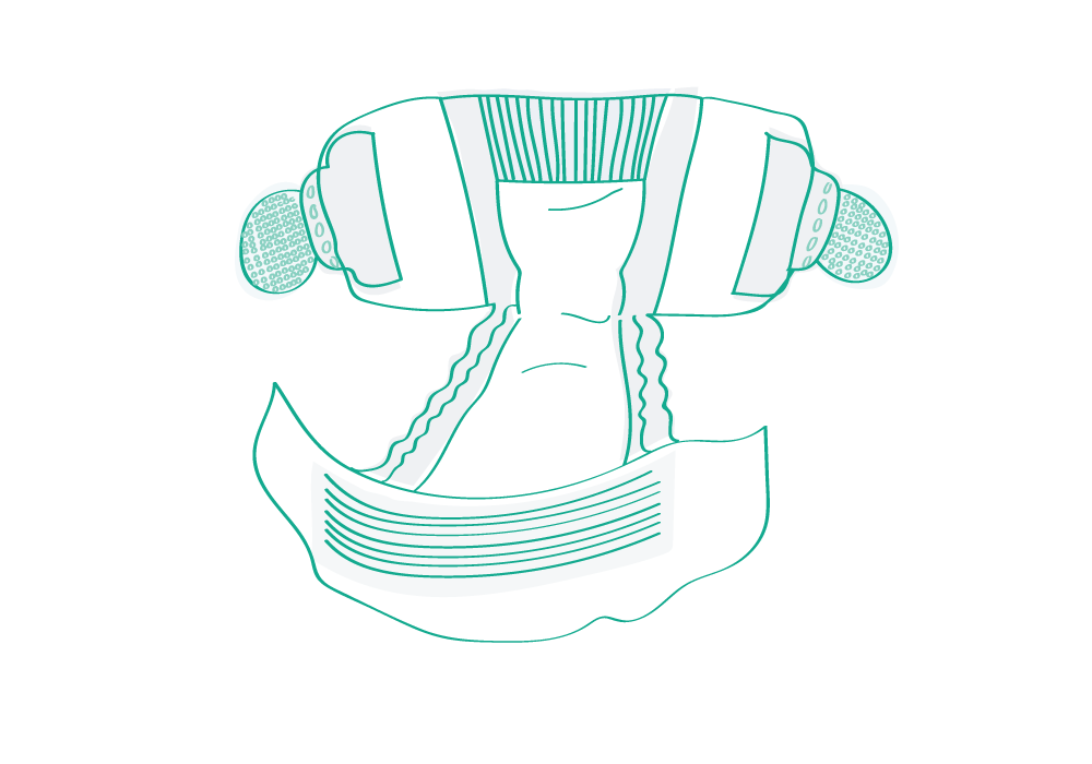 ➂ В большинстве других подгузников есть распределительный слой (ADL), состоящий из низкокачественной переработанной бумаги отбеленной хлором и часто выкрашенной в зеленый или голубой цвет. Offspring отказались от такого слоя, разработали свою технологию производства слоя для распределения и удерживания влаги, в котором также нет хлора.